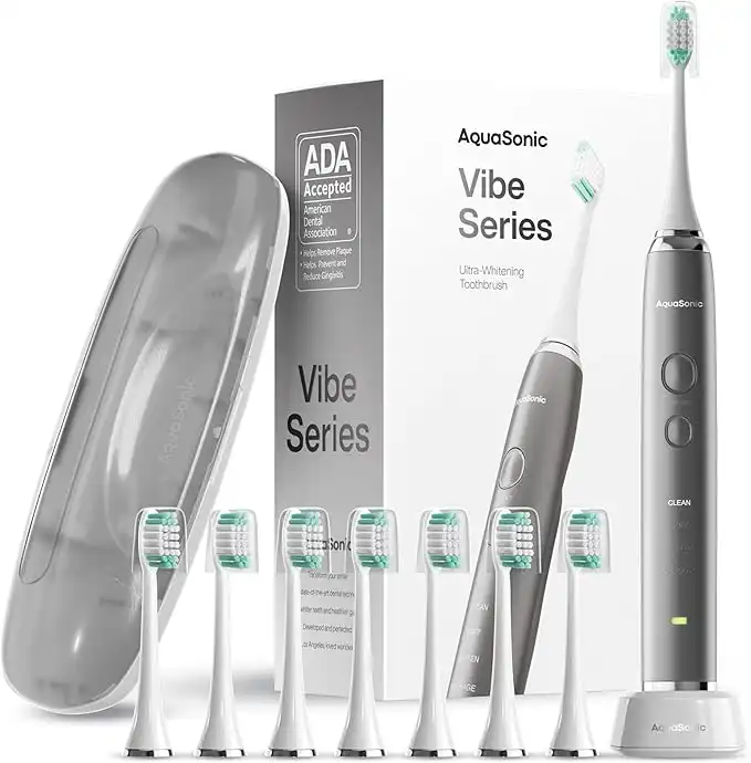 amazon.aeAquaSonic VIBE series Ultra Whitening Electric Toothbrush - 8 DuPont Brush Heads & Travel Case Included - Sonic 40,000 VPM Motor & Wireless Charging - 4 Modes w Smart Timer - Charcoal Metallic