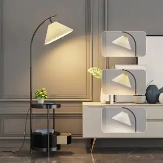 Arc Floor Lamp with Side Table 3-Color Dimmable LED (3000K-6000K) 12W Gold Standing Lamp with Storage Shelf for Living Room Bedroom