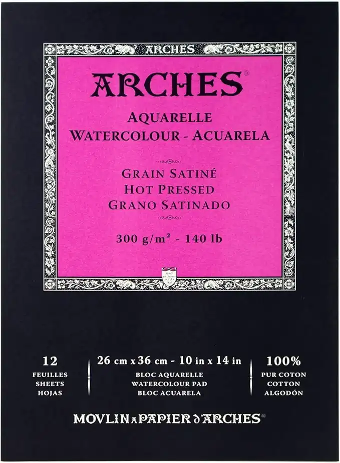 Arches Watercolor Pad 10x14-inch Natural White 100% Cotton Paper - 12 Sheet Hot Press 140 lb Pad for Watercolor, Gouache, Ink, Acrylic and More — Price History & Tracker | DeserTracker
