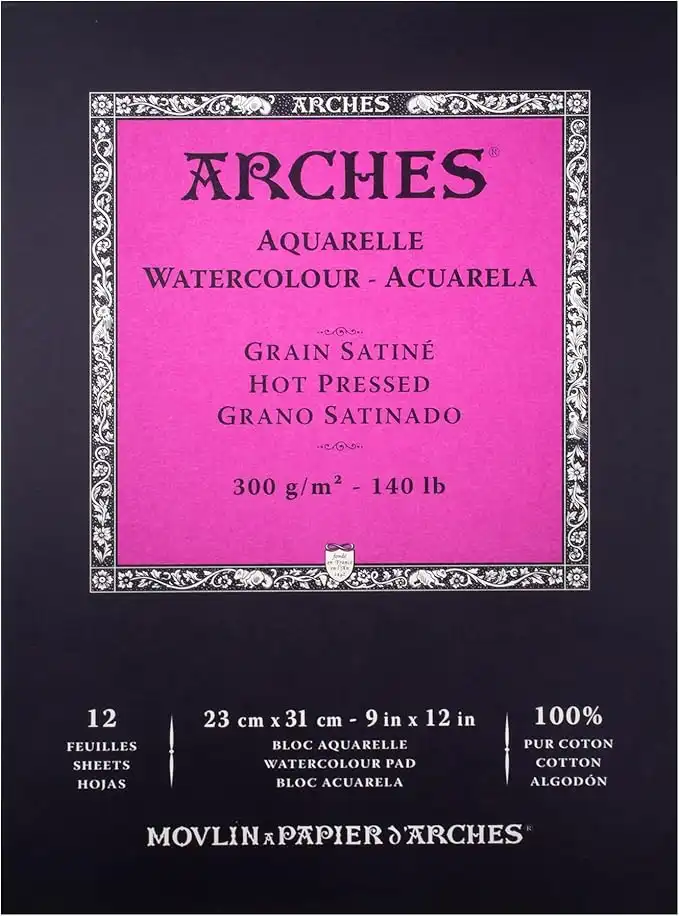 Arches Watercolor Pad - 9x12-inch Natural White 100% Cotton Paper, 12 Sheet Hot Press, 140 lb, Suitable for Watercolor, Gouache, Ink, Acrylic and More — Price History & Tracker | DeserTracker