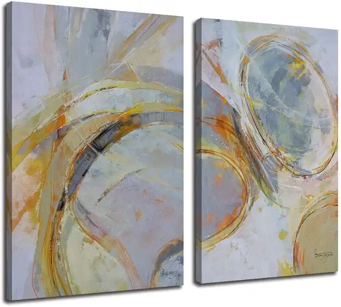 amazon.aeArjun Abstract Wall Art Grey Canvas Circles Yellow Painting Modern Geometric Vertical Gold Foil Handmade Pictures Framed Large for Living Room Bedroom Home Office Wall Décor, 24"x36"x2 Panels