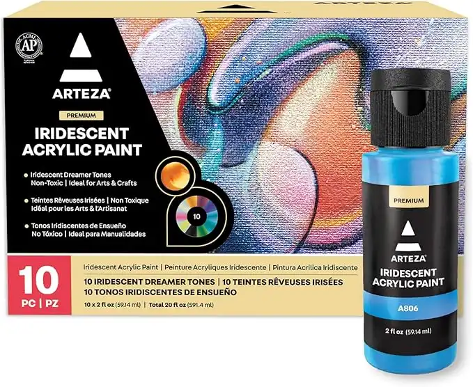 ARTEZA Iridescent Acrylic Paint, Set of 10 Dreamer Colors, 2 oz/60ml Bottles, High Viscosity Shimmer, Water-Based, Blendable Paints, Art Supplies for Canvas, Wood, Rocks, Fabrics — Price History & Tracker | DeserTracker