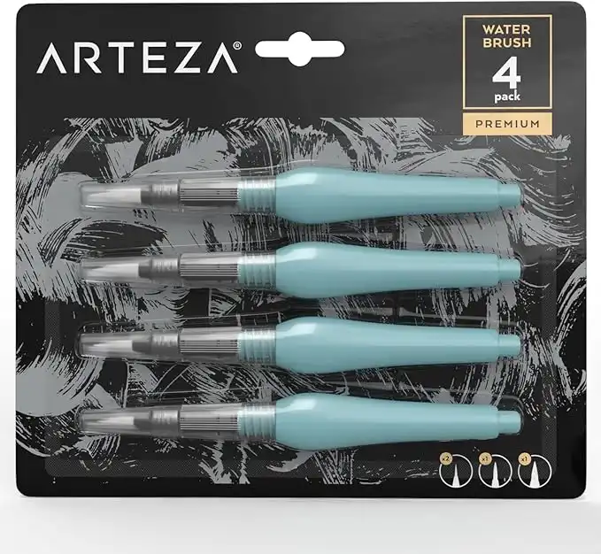 Arteza Water Brush Pens for Watercolor Painting, Set of 4 Water Pens, with Assorted Soft Nylon Bristle Tip Sizes, Self-Moistening Refillable Water Brush Pen Set for Aquarelle Ink — Price History & Tracker | DeserTracker