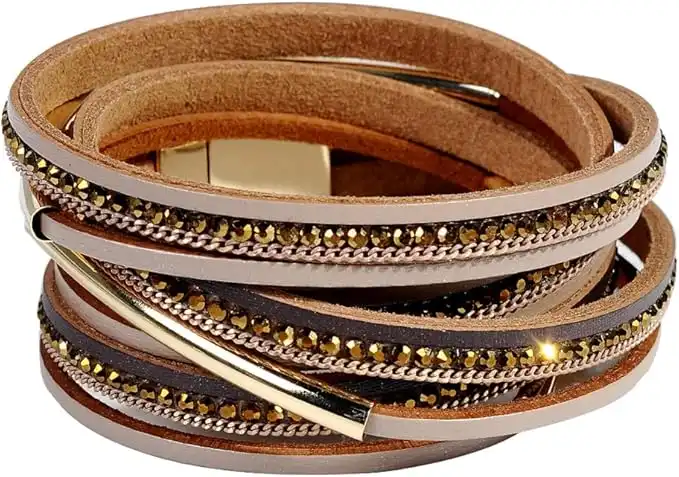 Artilady Leather Wrap Bracelet for Women - Handmade Clasp Bangle Bracelet with Pearl Beads Crystal Wristbands Jewelry Gift for Ladies and Mother — Price History & Tracker | DeserTracker