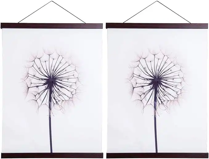 Artmag 2 Pack Magnetic Poster Hanger Frame, 9x24 9x12 9x11 Light Wood Wooden Magnet Canvas Artwork Print Dowel Poster Hangers Frames Hanging Kit (Walnut, 9", 2 Packs)
