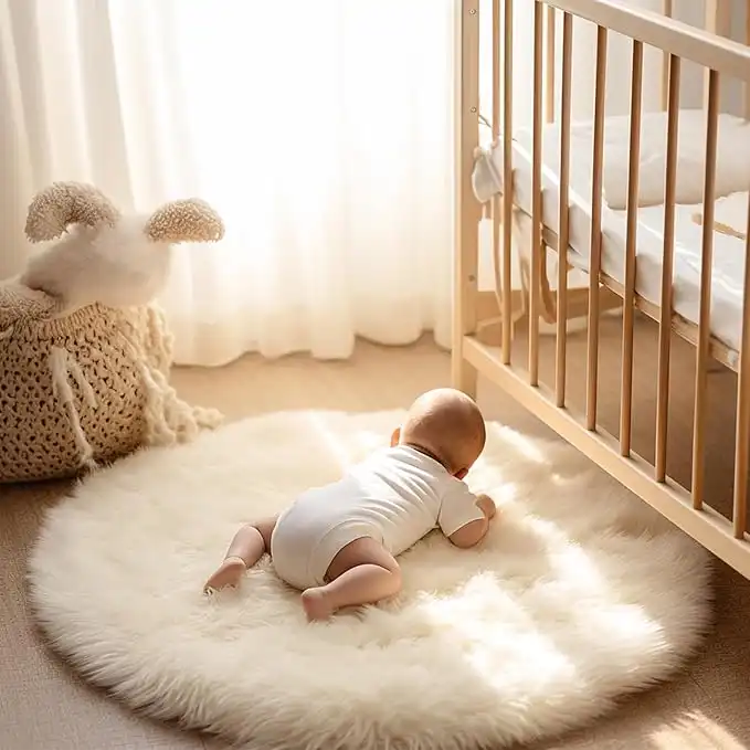 Ashler Home Deco Faux Fur Round Area Rug 0.9m