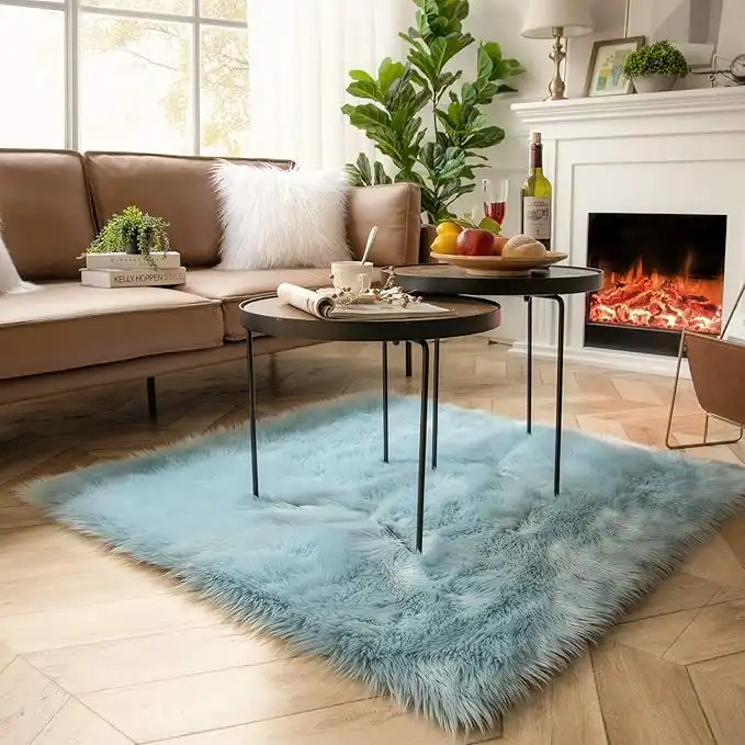 amazon.aeAshler Home Deco Faux Fur Rug, Fluffy Shaggy Area Rug Ultra Soft 4 x 4 Feet Square Fur Rug Light Blue Fuzzy Rug Machine Washable Shag Rug, Nursery Throw Rugs for Bedroom, Kids Room, Living Room