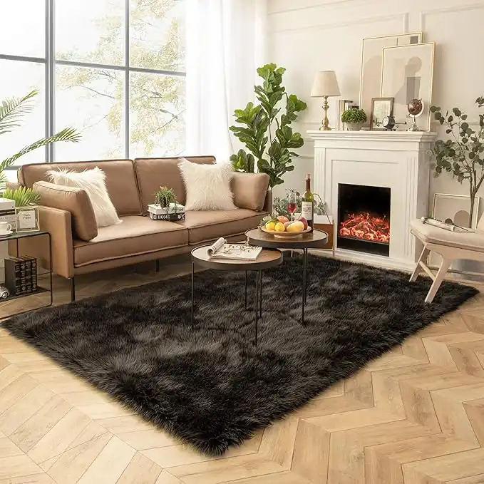 amazon.aeAshler Home Deco Faux Fur Rug, Fluffy Shaggy Area Rug Ultra Soft 6 x 9 Feet Rectangle Fur Rug Black Fuzzy Rug Machine Washable Shag Rug, Nursery Throw Rugs for Bedroom, Kids Room, Living Room