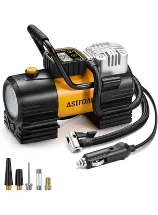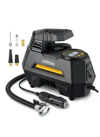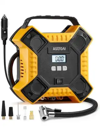 amazon.comAstroAI Tyre Inflator Air Compressor 12V DC, Digital Car Tyre Pump 150 PSI, Preset Tyre Pressure & Auto Shutoff, Electric Air Pump for Car Tyres, Bicycles, Other Inflatables (Yellow)