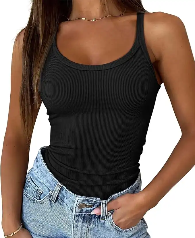 ATHMILE Women Ribbed Scoop Neck Tank Top