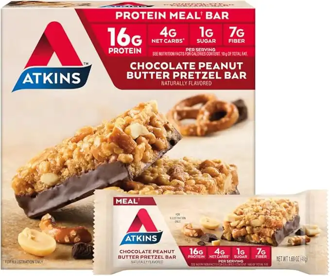 Atkins, Chocolate Peanut Butter Pretzel Bar, 5 Bars, 1.69 oz (48 g) Each — Price History & Tracker | DeserTracker