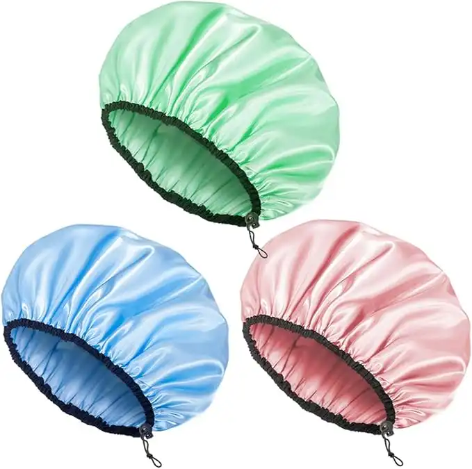 Auban Shower Cap for Women, Adjustable Reusable, Extra Large, Double-Layer Waterproof Bathing cap, Waterproof Exterior, EVA Lining, Hair Cap for All Hair Lengths, 3 Colors