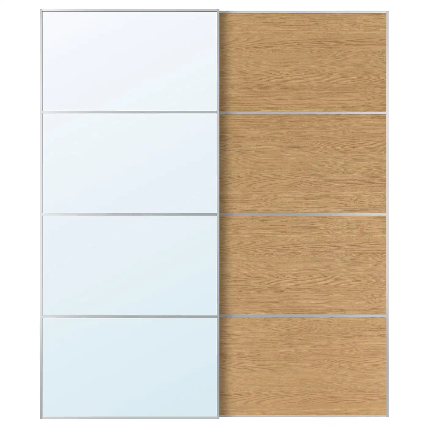 AULI / MEHAMN Pair of sliding doors - aluminium mirror glass/double sided oak effect 200x236 cm