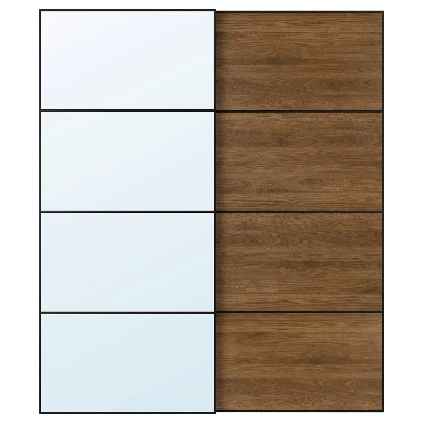 AULI / MEHAMN Pair of sliding doors - black mirror glass/double sided walnut 200x236 cm