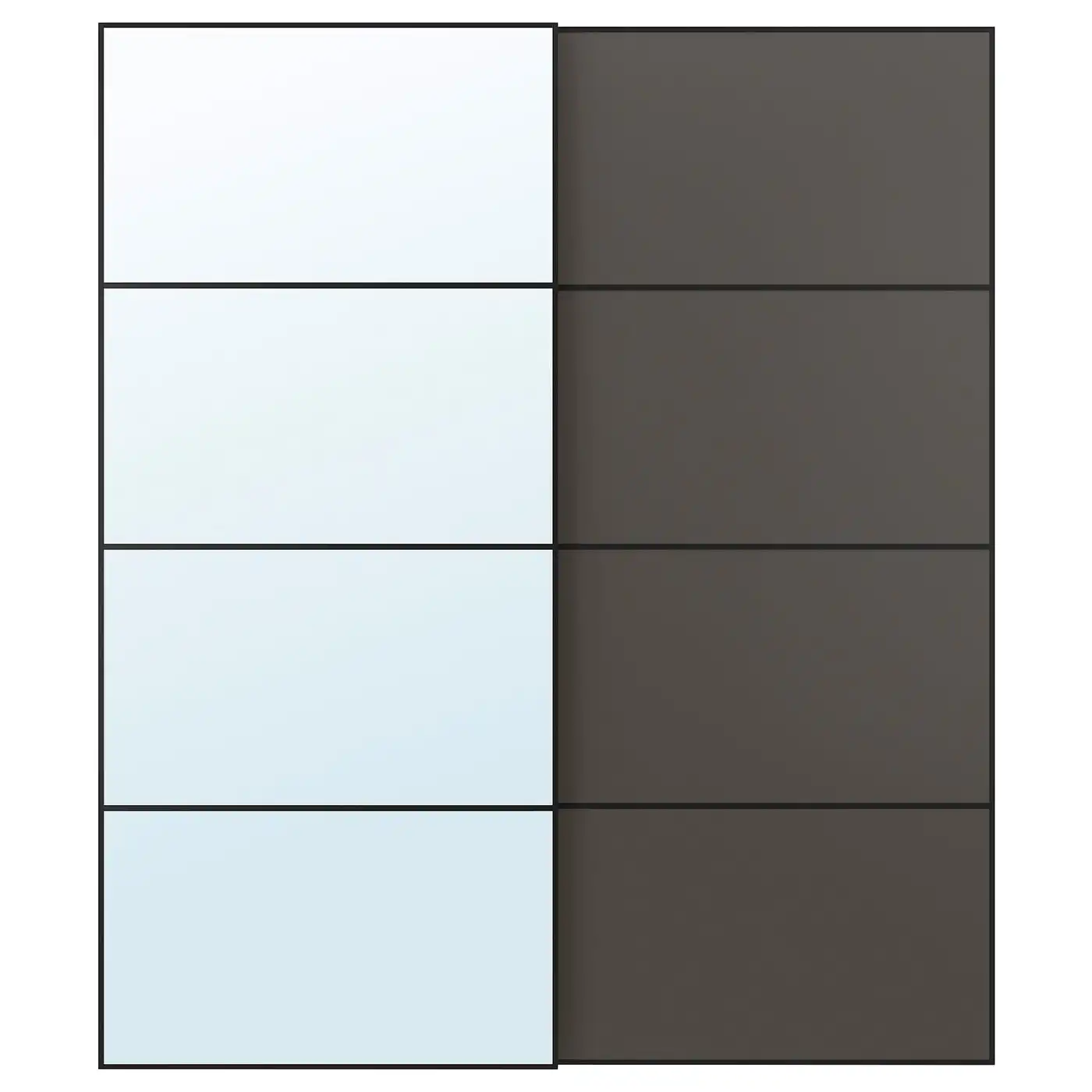 AULI / MEHAMN Pair of sliding doors - black mirror glass/double sided dark grey 200x236 cm