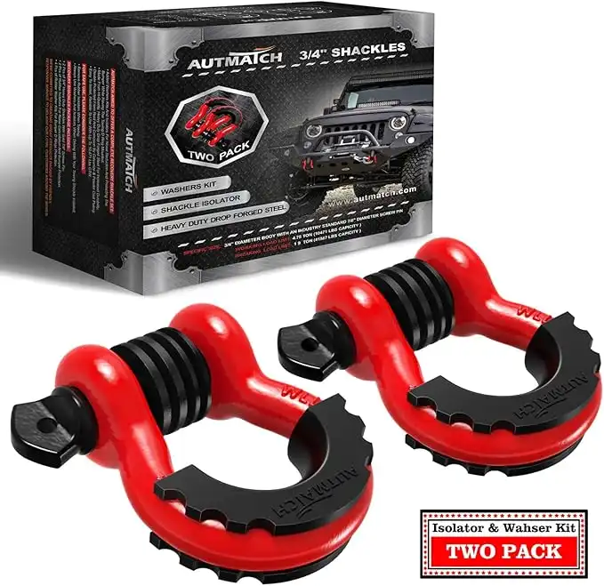 amazon.aeAUTMATCH Shackles 3/4" D Ring Shackle (2 Pack) 41,887Ib Break Strength with 7/8" Screw Pin and Shackle Isolator & Washers Kit for Tow Strap Winch Off Road Jeep Vehicle Recovery Red & Black