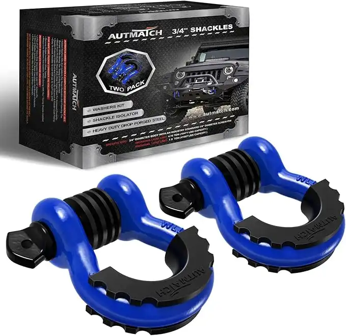amazon.aeAUTMATCH Shackles 3/4" D Ring Shackle (2 Pack) 41,887Ib Break Strength with 7/8" Screw Pin and Shackle Isolator & Washers Kit for Tow Strap Winch Off Road Vehicle Recovery Blue