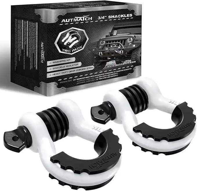 AUTMATCH Shackles 3/4" D Ring Shackle (2 Pack) 41,887Ib Break Strength with 7/8" Screw Pin and Shackle Isolator & Washers Kit for Tow Strap Winch Off Road Jeep Vehicle Recovery White & Black