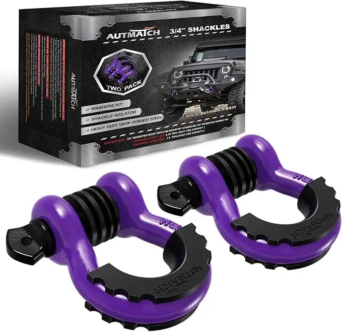 amazon.aeAUTMATCH D Ring Shackle 3/4" Shackles (2 Pack) 41,887Ibs Break Strength with 7/8" Screw Pin and Shackle Isolator Washers Kit for Tow Strap Winch Off Road Vehicle Recovery Purple & Black