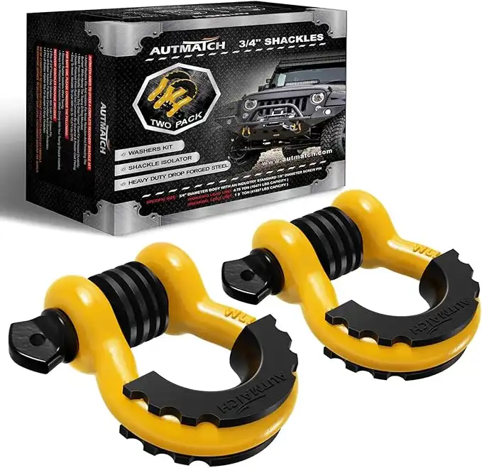 amazon.aeAUTMATCH Shackles 3/4" D Ring Shackle (2 Pack) 41,887Ib Break Strength with 7/8" Screw Pin and Shackle Isolator & Washers Kit for Tow Strap Winch Off Road Jeep Vehicle Recovery Yellow & Black