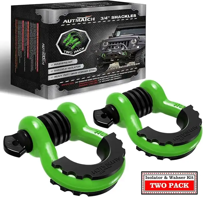 amazon.aeAUTMATCH D Ring Shackle 3/4" Shackles (2 Pack) 41,887Ibs Break Strength with 7/8" Screw Pin and Shackle Isolator Washers Kit for Tow Strap Winch Off Road Vehicle Recovery Green & Black