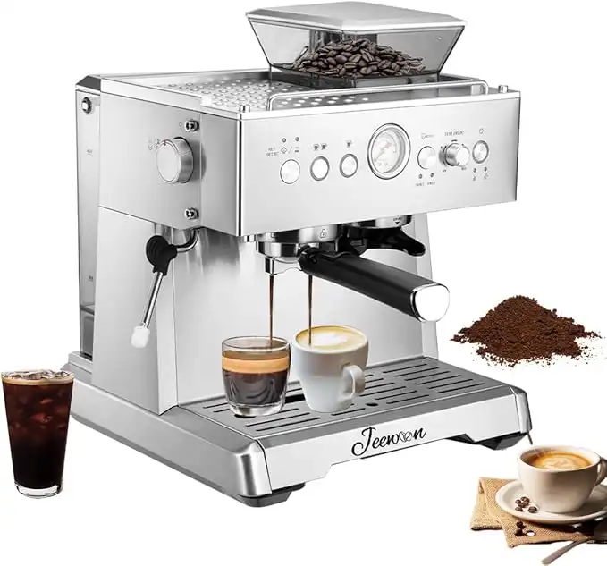 amazon.aeAutomatic Coffee Machine, Espresso Machine, Coffee Machine with Grinder, 20 Bar Pressure Semi-Automatic Espresso Coffee Machine with Steam Wand, Cappuccino Machine for Latte, Macchiato