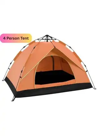 noon.comAutomatic Pop-Up Instant Camping Tent 200x200x135cm – 4-Person Easy Setup Tent with UV Protection, Waterproof, Lightweight Travel Tent for Camping, Hiking & Festivals, Orange