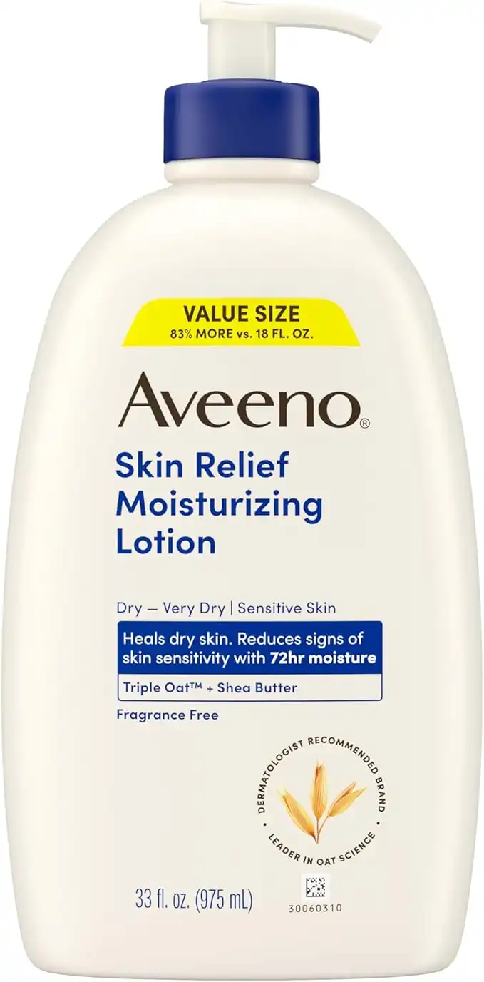 Aveeno Skin Relief Moisturizing Lotion for Very Dry, Itchy, Dry Skin, Body Moisturizer, Soothing Triple Oat & Shea Butter, Fragrance-Free, Non-Greasy, 33 fl oz — Price History & Tracker | DeserTracker