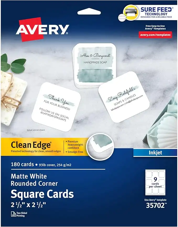 Avery Clean Edge Printable Square Cards with Sure Feed Technology, Rounded Corners, 2.5" x 2.5", White, 180 Blank Cards for Inkjet Printers (35702) — Price History & Tracker | DeserTracker