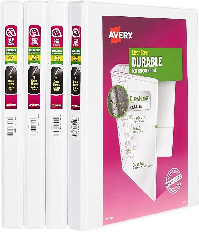 Avery Durable View 3 Ring Binder, 1/2 Inch Slant Rings, 4 White Binders (03362) — Price History & Tracker | DeserTracker