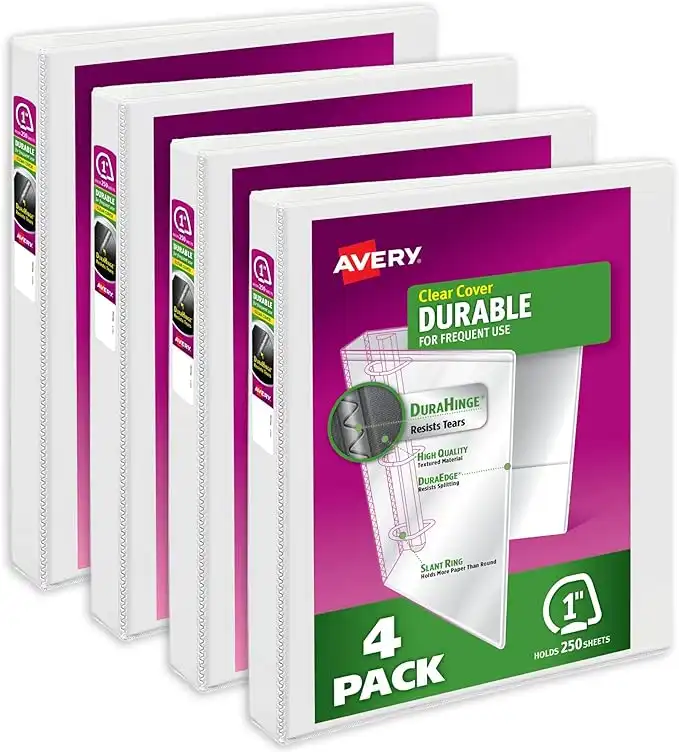 Avery Durable View 3-Ring Binder 4-Pack 1-Inch Slant Rings (17575)