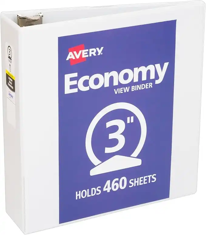 Avery Economy View 3 Ring Binder, 3" Round Rings, 1 White Binder (05800)