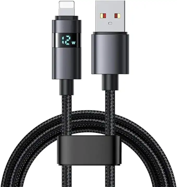 Azonee USB-A to Lightning Cable with Horizontal LED Display, 4ft Length Nylon Braided Lightning USB-A Fast Charging Cable for iPhone 14/13/12/11/Pro/ProMax/Plus, iPad, AirPods, iTouch