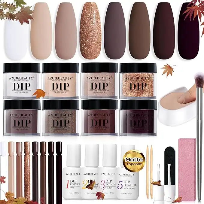 AZUREBEAUTY 30Pcs Dip Powder Nail Kit Starter, 8 Colors Fall Nude Brown Glitter Purple Nude with Nail Sticks, Nail Art Liquid Set with Matte/Base/Top Coat Activator for French Manicure Salon — Price History & Tracker | DeserTracker