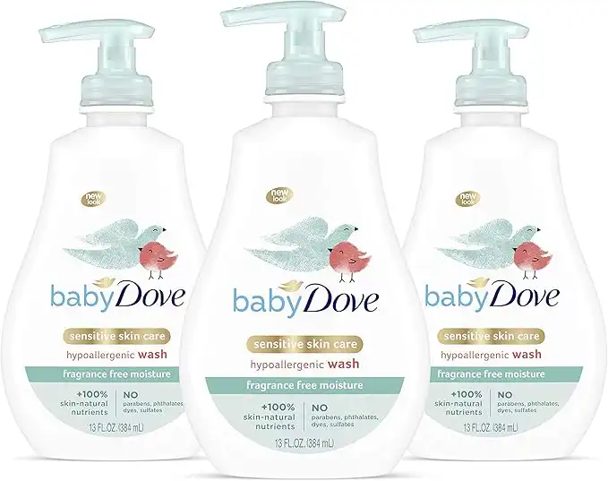 Baby Dove Tip to Toe Baby Body Wash For Baby's Sensitive Skin Sensitive Moisture Washes Away Bacteria, Fragrance-Free and Hypoallergenic Baby Soap, 13 Fl Oz (Pack of 3)