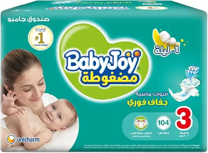 BabyJoy Compressed Diamond Pad Diaper, Jumbo Box Medium Size 3, Count 104, 6 - 12 Kg — Price History & Tracker | DeserTracker