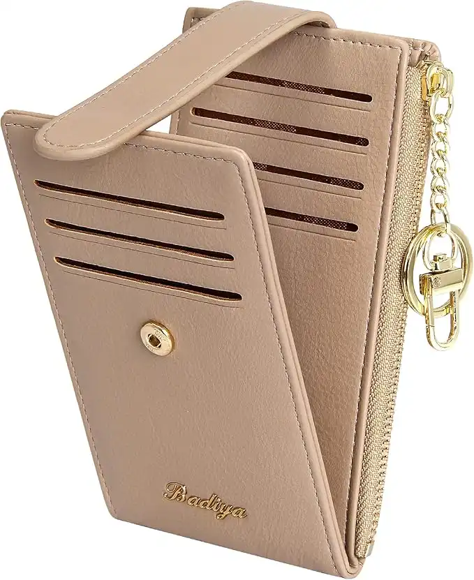 Badiya Slim Women Wallet RFID Blocking Bifold Compact 9 Card Slots Holder Wallets Soft Leather with Zipper Coin Pocket 2 ID Window, Lychee-Z Khaki & Key Chain, one_size, Classic — Price History & Tracker | DeserTracker