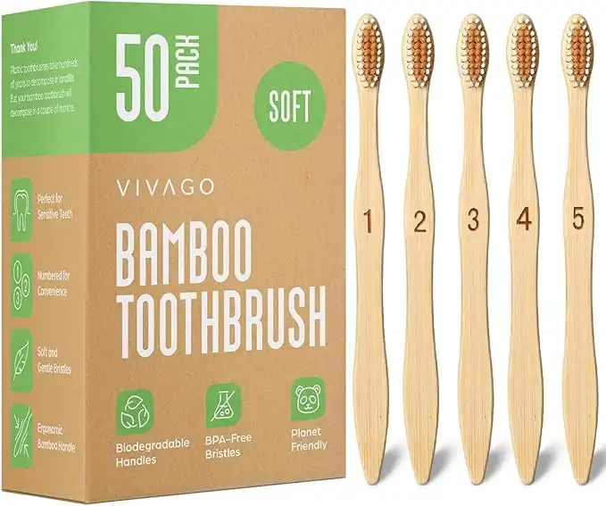 Bamboo Toothbrushes Bulk Soft Bristles (50 Pack) - Eco-Friendly, Natural Wooden Toothbrush — Price History & Tracker | DeserTracker