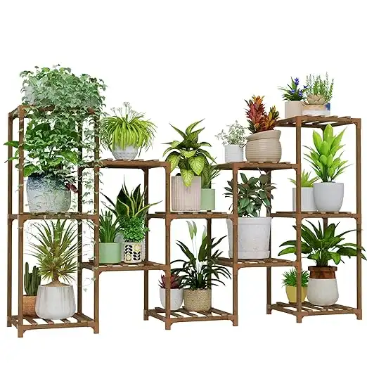 Bamworld Large Plant Shelf Outdoor Wood Plant Stand Large Rack for Living Room Patio, Balcony and Garden — Price History & Tracker | DeserTracker