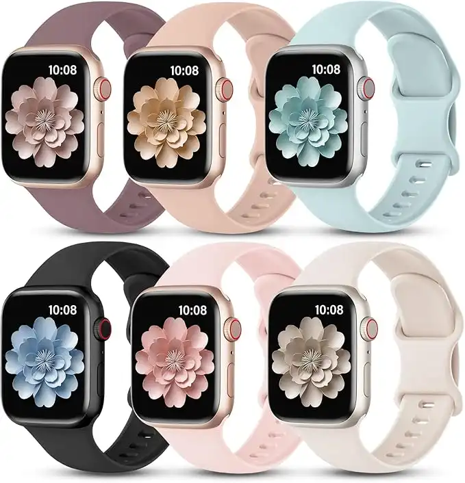 Bands Compatible with Apple Watch Band 38mm 40mm 41mm 42mm 44mm 45mm, Soft Silicone Sport Replacement Band Compatible with iWatch Series 7 6 5 4 3 2 1 Women Men