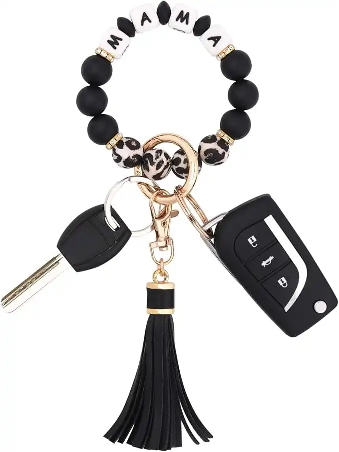 BAOSIWA Silicone Beaded Bracelet Keychain Wristlet Key Ring Bangle Chains for Women with Leather Tassel — Price History & Tracker | DeserTracker