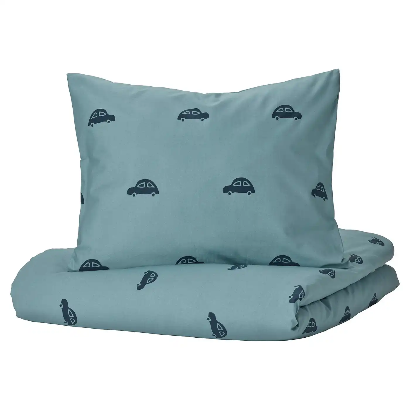 BARNDRÖM Duvet cover and pillowcase - car pattern/blue 150x200/50x80 cm
