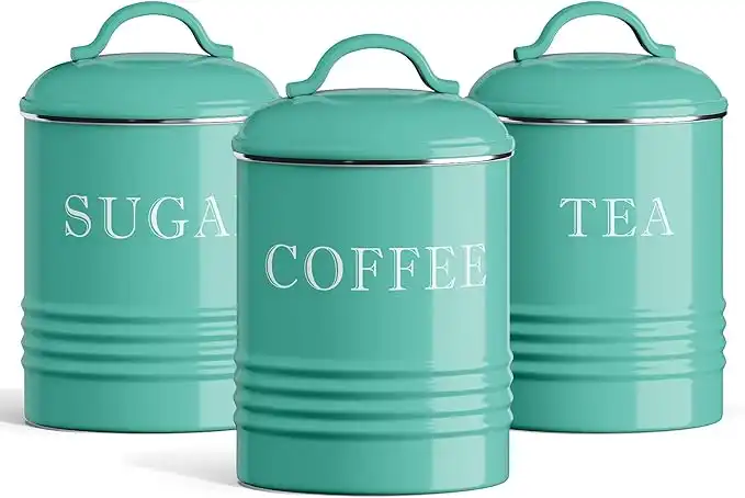 Barnyard Designs Canister Sets for Kitchen Counter, Vintage Kitchen Canisters, Country Rustic Farmhouse Decor Coffee Tea Sugar Container Set, Metal (Turquoise) — Price History & Tracker | DeserTracker