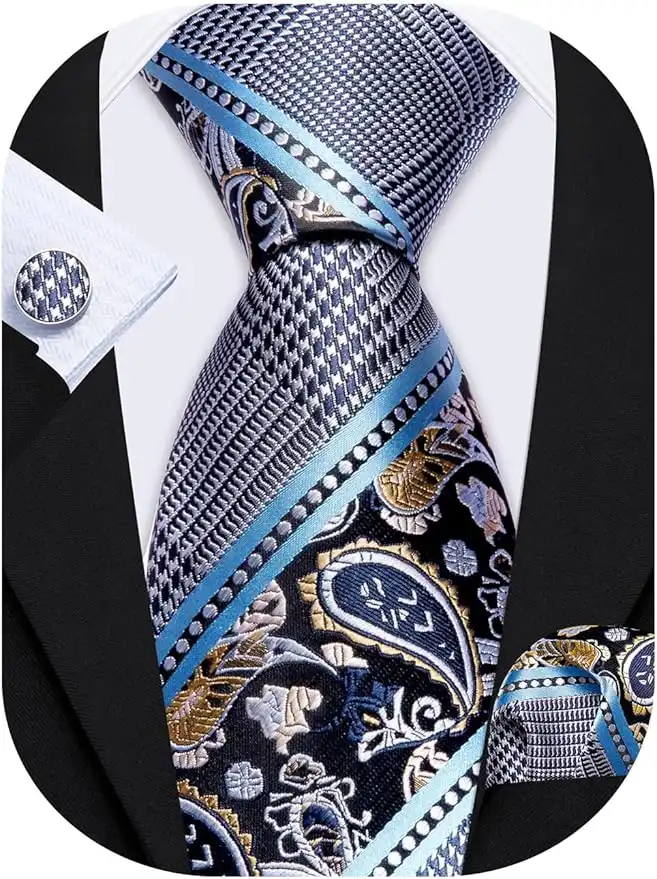 Barry.Wang Mens Tie Set Plaid Check Neckties Formal Business Wedding Luxury Pocket Square Cufflinks — Price History & Tracker | DeserTracker