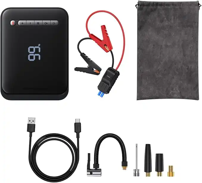 Baseus 2-in-1 Jump Starter with Air Compressor, LED Display 1000A Car Battery Charger (4.0L Gas or 2.5L Diesel) 12V Car Jump Starter Jumper Cables