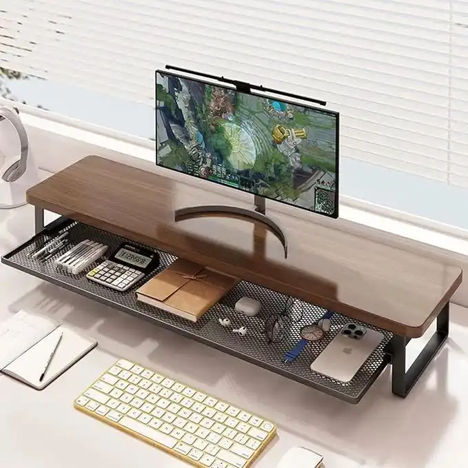 Beauenty 2 Tier Wood Monitor Stand Riser, with Retractable Metal Braket, Computer Desk Storage Organizer, Monitor Stand for Laptop, Computer, iMac, Printer (Brown) — Price History & Tracker | DeserTracker