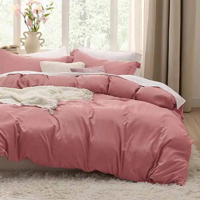Bedsure Pink Clay Duvet Cover King Size - 3 Pieces Prewashed Cotton-Like Extra Soft Bedding Set, Includes 1 Duvet Cover 104x90 Inches with Zipper Closure & 2 Pillow Shams, Comforter Not Included — Price History & Tracker | DeserTracker