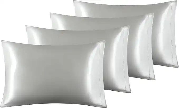 amazon.aeBedsure Satin Pillow Cases 4 Pack - Pillowcase for Hair Standard Size with Envelope Closure, 50 x 75 cm, Grey
