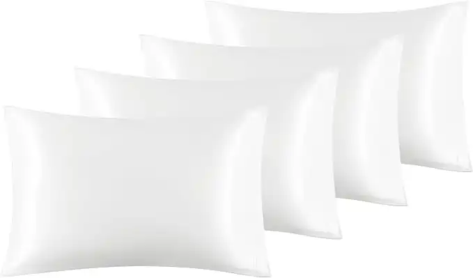 amazon.aeBedsure Satin Pillow Cases 4 Pack - Pillowcase for Hair Standard Size with Envelope Closure, 50 x 75 cm, White