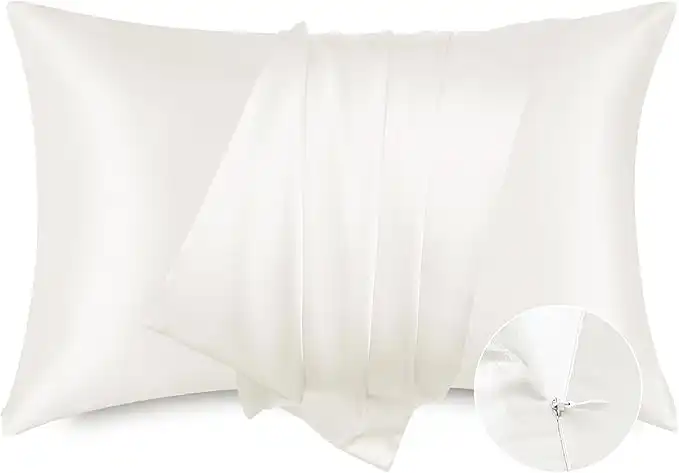 Bedsure Satin Pillowcase with Zipper, Similar to Silk Pillow Cases 2 Pack, Silky & Soft Satin Pillow Cases Standard Size for Hair and Skin, Ivory Pillow Covers, Gifts for Women Men, 20x26 Inches — Price History & Tracker | DeserTracker